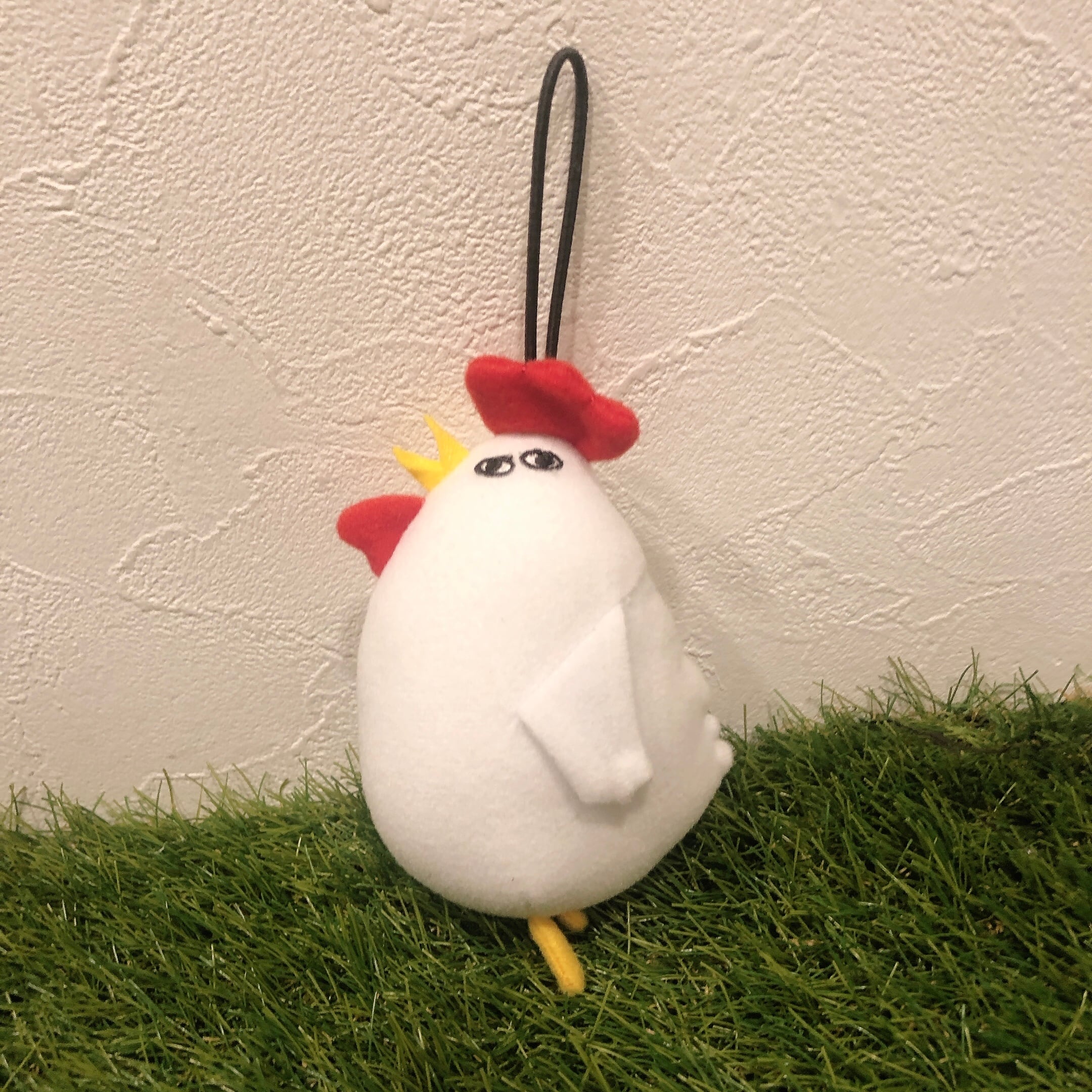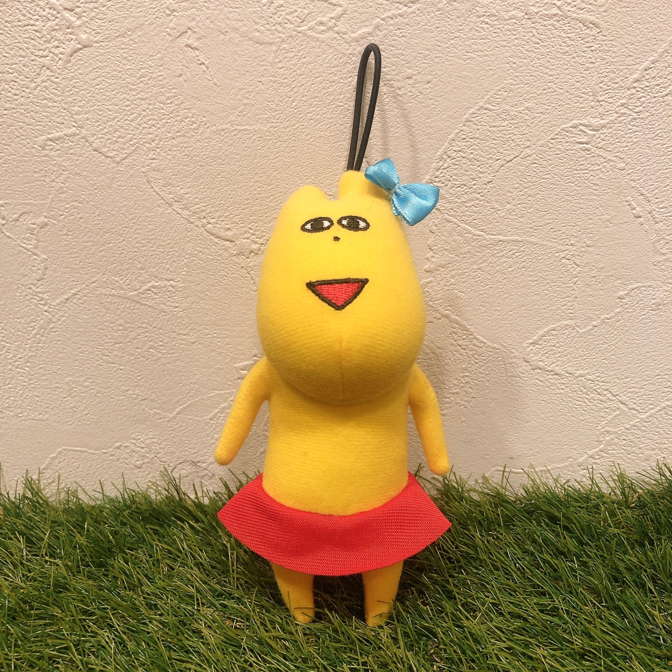 頭のうしろにゴム紐がついているので、カバンなどにぶら下げることができます。